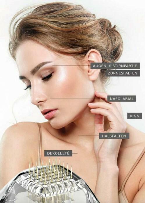 Als Weiterentwicklung zum Dermaroller verwenden wir für das Micro Needling einen elektrisch betriebenen Lifting Pen, mit genau einstellbarer Tiefe der Nadeln und genau senkrecht zur Haut stehenden Nadeln.
